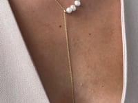 Adjustable Golden Silver Lariat Necklace - Cultured Pearls