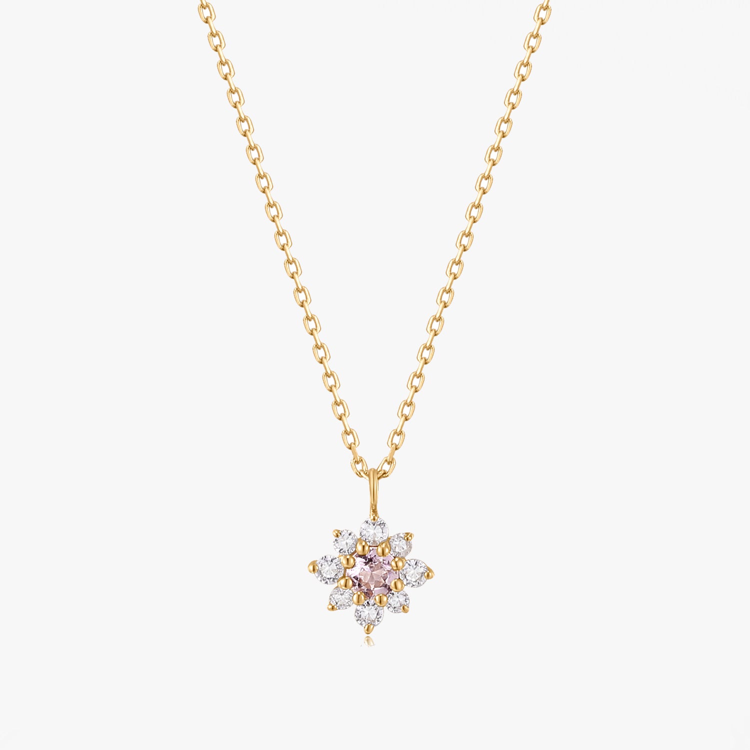 Flora Yellow Gold Necklace - White Sapphire, Pink Morganite