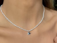 Tiana - Natural Pearls. The jewelry has a length of 38 - 40 cm, and its height is 14 mm. The natural pearls used have a height of 3 mm.