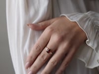 Faerie with garnet and zirconia stone, covered with a generous layer of 14K gold. The stone measures 8x6 mm and the entire ring weighs 2.2 grams.