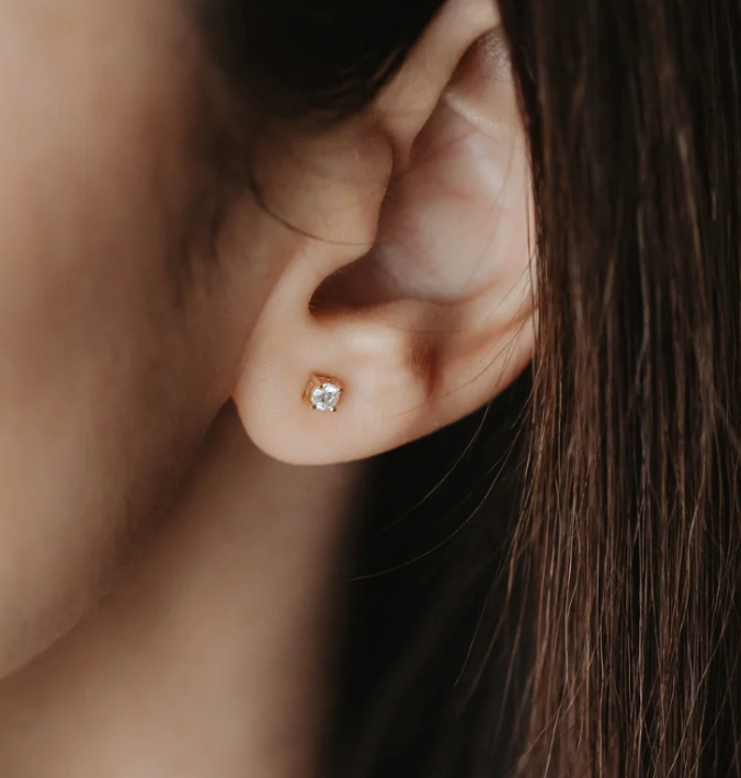 The 14K gold ensures not only exceptional shine but also remarkable durability, while the classic 4-prong setting allows light to enter from all angles, further enhancing the diamond's beauty. The butterfly clasp system guarantees comfort and security throughout the day.
